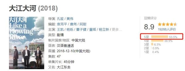 由孔笙执导,侯鸿亮担任制片人,王凯、杨烁、董子健主演的电视剧《大江大河》一开画就拿到豆瓣8.9的高分。