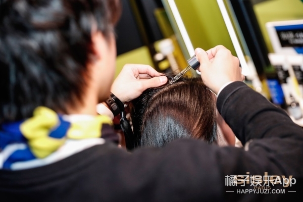 知名造型师李东田先生为林允试用法国希思黎赋活强韧护发精华,并配合进行头皮按摩