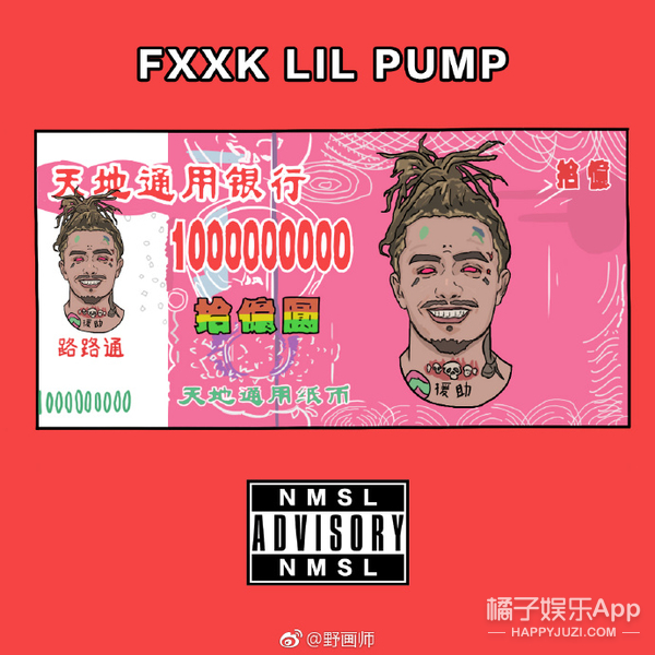 博主@野画师更直接,给Lil Pump的歌画了个专辑封面。