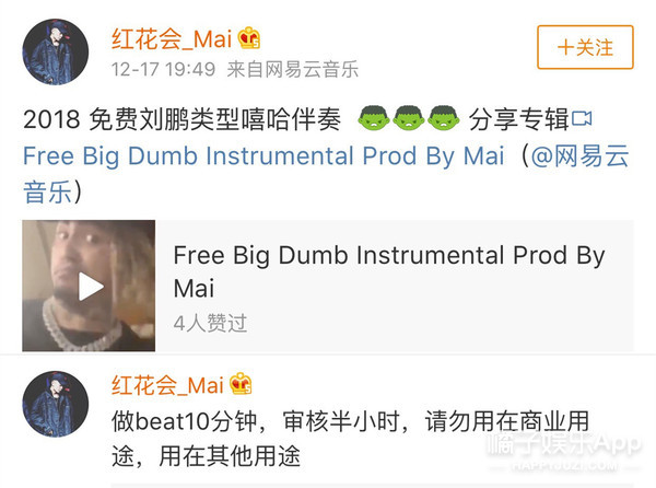 红花会Mai用十分钟的时间做出beat,就等兄弟们填好词开始diss。