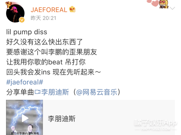 jaeforeal出了《李朋迪斯》,用你歌的beat吊打你。