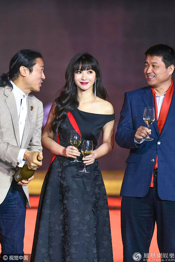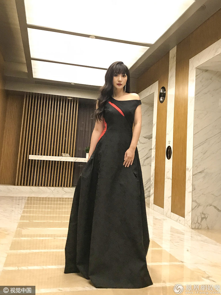 柳岩黑小露香肩优雅与性感并存 遭簇拥追拍提裙摆羞涩微笑