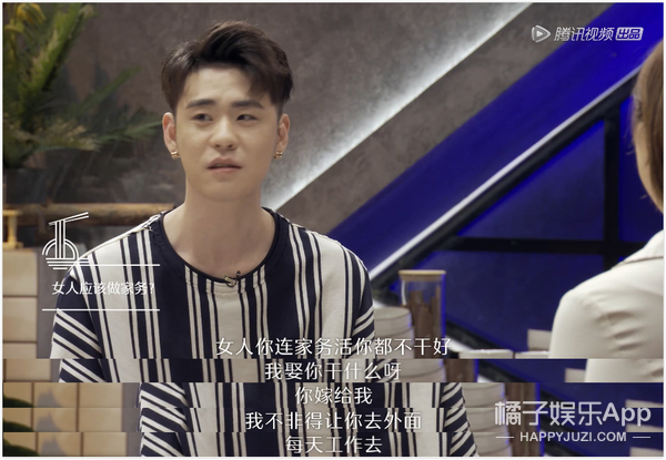 紧接着,主持人又问他觉得女朋友在家里应该要做什么?