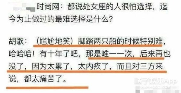 2012年在接受媒体采访时,胡歌就曾自曝十年前自己有过脚踏两只船的经历。