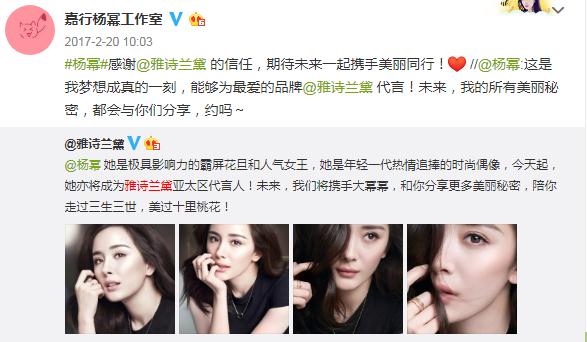 确实杨幂有一段时间资源不错,2017年那一年,先是当上了雅诗兰黛代言人。
