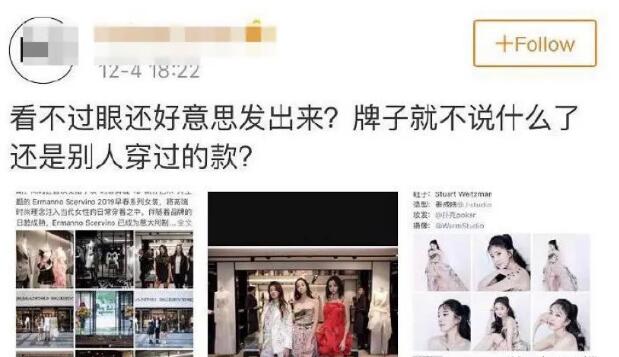 这个牌子也被网友扒出来,是个平价牌,还被粉丝嫌弃早被人穿过。