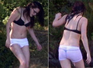 斯图尔特的腰前肥肉,一脱了衣服马上无所遁形,整个身躯毫无曲线可言,就是活生生的水桶腰,完全看不出是曾经演过《暮光之城》系列电影中的纤细贝拉,或者《公主与狩猎者》中的白雪公主模样,令不少宅男看到心碎。