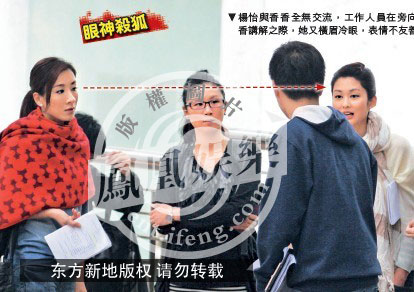 上周五下午《On Call 2》在南华会外取景,冤家聚头,有杨怡在场,罗仲谦、岑丽香疑因心虚忽然变不熟,镜头外全无交流,分开站很远;杨怡对罗仲谦亦黑脸相向、不理不睬,表面不在乎,其实相当眼冤,气势生人勿近。拍完戏三路人马分头走,谦、怡分乘两部车,岑丽香则伙同朱千雪步行,被正印气势压倒,岑丽香离开时一脸失落。