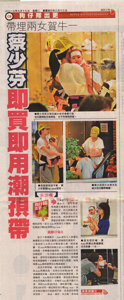 据香港媒体报道,今天是蔡少芬(Ada)40岁生日,前日她带着两岁大的楚儿及5个月大的信儿,同大班亲友庆祝,但不见蔡少芬丈夫张晋出现。张晋最近在与周润发合拍电影《赌城风云》,或许是片场太忙无法脱身。前日蔡少芬还买了生日礼物,就是近期流行的婴儿背带。