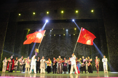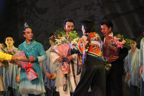 由浙江起挺生物科技有限公司、杭州辉越文化创意有限公司联合承办的大型舞台秀《太极图》在浙江省人民大会堂经过连续三天的场场爆满和好评如潮之后完美落幕。至此,由中国国际文化交流中心主办、中国国际文化艺术公司和中华绝技艺术团出品及承办的、历时三年精心打造的大型舞台秀《太极图》2013年巡演,在经历了北京保利剧院、深圳大剧院、广州白云国际会议中心、浙江人民大会堂共计11场的巡演之后正式收官。舞台上,《太极图》巡演的接力城市天津和大连的代表从中华绝技艺术团董事长何俊龙和中国国际文化艺术公司总经理江凌的手中接过红旗,《太极图》巡演大旗再次在舞台上飘起,现场气氛相当热烈。