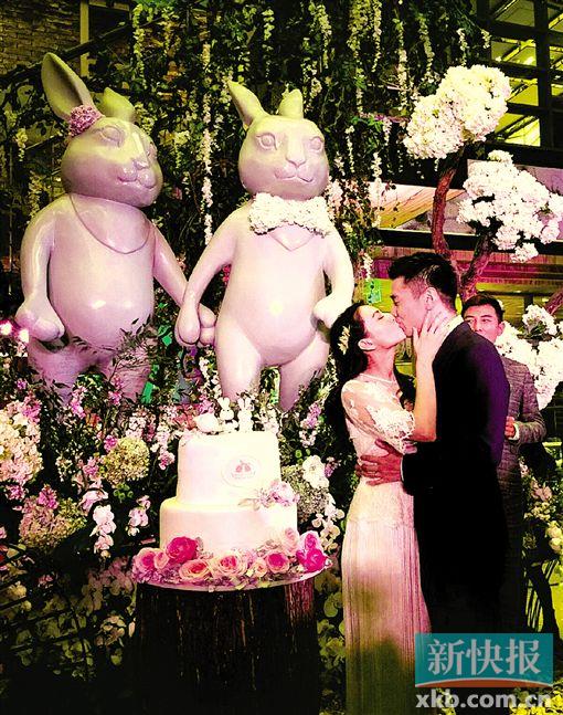 记者了解到,当晚宾客近百人,其中不少都是女方的高中同学。酒店现场安保森严,大批媒体只好在酒店大堂等待。其间有工作人员送上喜糖,代两位新人向媒体问好。宾客离开时都手持礼物,有宾客大方展示礼盒,只见礼盒上印有两只正在接吻的烫金兔子,不过工作人员迅速赶来,拒绝宾客继续展示。![]()