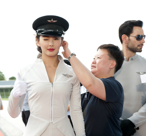 为充分营造科幻感,电影《蒸发太平洋》在服装上下足功夫。剧照中,张雨绮身着别具一格的飞行服,对话由著名好莱坞华人影星王盛德Russell Wong饰演的航空公司CEO。据悉,这套飞行服采用具有现代金属质感的光面布料为基础,为了充分达到修身效果、展现张雨绮的曼妙身姿,该制服同时使用了含有莱卡的弹力纤维与立体剪裁。而在色彩上,则选用了简洁而充满现代感的浅灰色,加以银色镶边装饰,未来机长的帅气与威严就这样跃然荧幕之上。