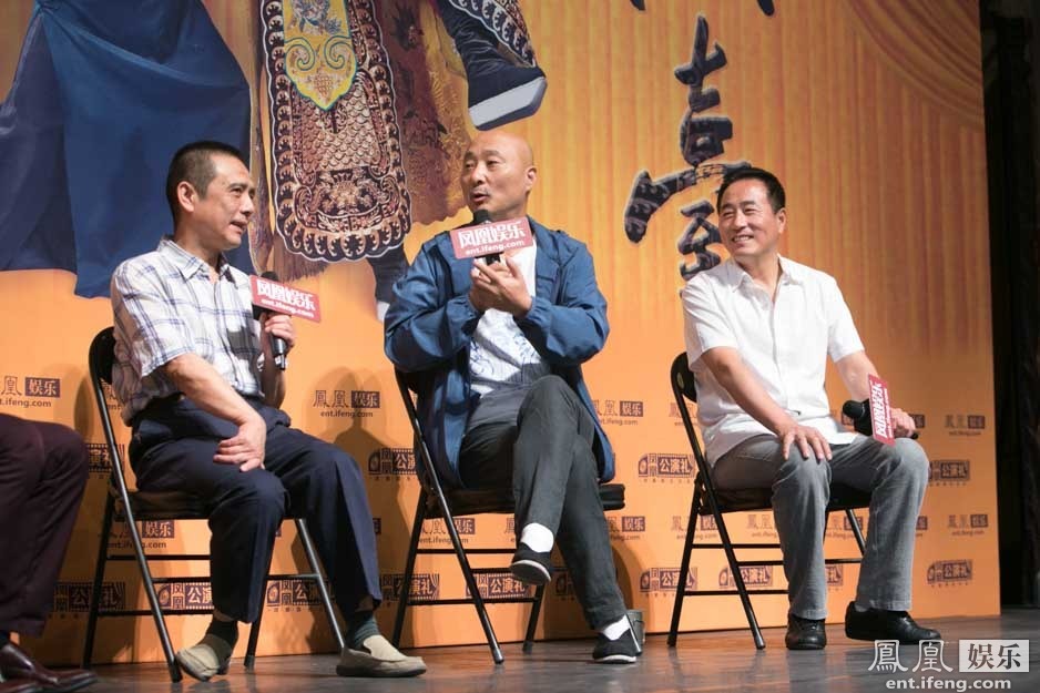 凤凰娱乐讯 7月15日下午,由凤凰娱乐主办的“中国戏剧活动首选平台”凤凰公演礼携手陈佩斯最新话剧《戏台》在北京喜剧院举行,导演兼主演陈佩斯,主演杨立新、编剧毓钺出席活动,特邀国家大剧院主持人赵爽楠担任现场主持,近四百位观众到场观看。近2小时的时间里,陈佩斯等人讲述了《戏台》的台前幕后故事,分享了他们对于喜剧的理解,三位主创还即兴表演了京剧桥段,现场气氛高潮迭起。