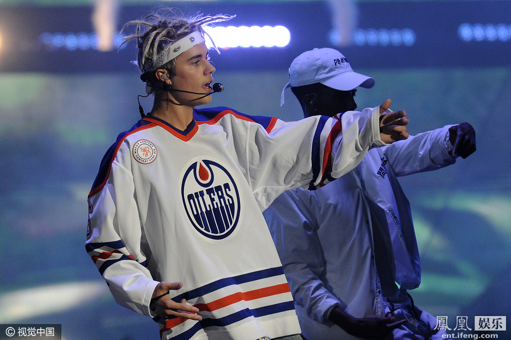 贾斯汀·比伯登高台演出超刺激 穿嘻哈服怒甩脏辫