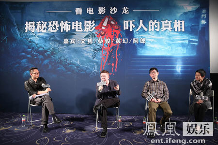 现场嘉宾文隽、黄幻、蔡骏从他们各自参与拍摄恐怖电影的角度出发,阐释了恐怖电影到底有哪些经典的吓人手法。常年拍摄惊悚片的文隽表示,在内地拍摄惊悚片的套路他已了如指掌,他知道如何最大化地拍保证影片完整度。当然,文隽也强调:这些吓人手段的发挥效果,往往取决于是否有一个足够新颖的故事创意。文隽更笑言,现在的观众都是“专业”的,如何与观众“捉迷藏”,创新剧本是他和编剧团队在制作过程中的重中之重。