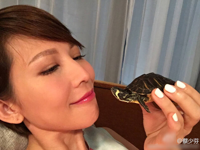 “娘娘”当心!蔡少芬亲乌龟 网友:小心被咬变香肠嘴
