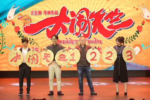 王宝强导演处女作《大闹天竺》将于12月23日全国公映。10月10日片方在京举办 “接风洗尘,年末大笑”主题发布会,首执导筒的王宝强西征归来,携电影主演白客、岳云鹏、柳岩首次公开亮相,在异域风情的音乐中翩翩起舞,嗨翻全场。王宝强更是在现场袒露心声,首度对“婚变”事件表态,他感谢大家的支持和帮助,他也相信法律的公平公正,希望能通过自己的作品,给大家带来欢笑和正能量。