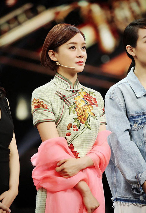 这装扮别有风味! 袁姗姗穿绿色旗袍淡雅素净