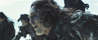 而到了《加勒比海盗5》中,境况更糟糕了。为了萨拉查那张狰狞开裂的脸,哈维尔每天早上上戏之前要花三个小时坐在化妆椅上“任人摆布”,他的后脑勺还要被蓝布裹起来,因为萨拉查船长的后脑勺已经炸开花了。“我的头发被拉到后面,蓝色捕捉点布满我的脸。我的脸本身不太吓人,但现在真的挺可怕的。”