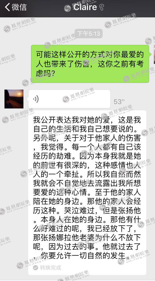 凤凰网娱乐:可能这样公开的方式对你最爱的人也带来了伤害,这你之前有考虑吗?