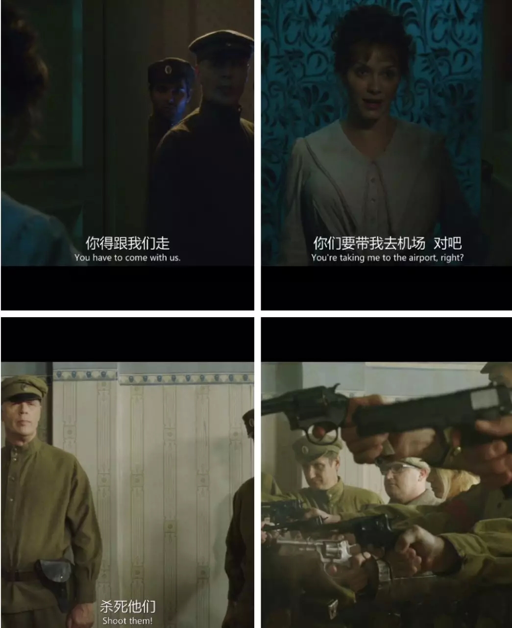 这样的剧组工作让Olivia很不习惯。于是在她准备离开的当天晚上,一群士兵强行把她拖到了一个小房间,开始对他们进行枪杀。(与片头曲的场景十分相似)。