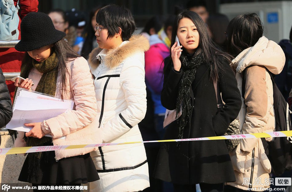 2015年01月30日讯,北京,29日,参加外省市高校艺术类校考的学生们云集北京戏曲艺术职业学院考点内,场面壮观靓丽养眼。图为艺考学生。