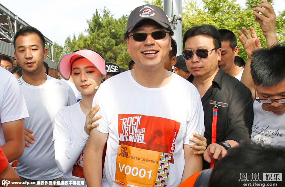 8月8日,范冰冰现身北京摇滚跑活动,顶着酷暑卖力捞金。台下“范爷”还霸气十足地“保护”联想总裁杨元庆穿越人群,两人一同亮相活动现场。范冰冰戴着自己最爱的粉色“大妈帽”包裹严实,做好十足的防晒措施,她右手戴着的戒指十分抢镜。