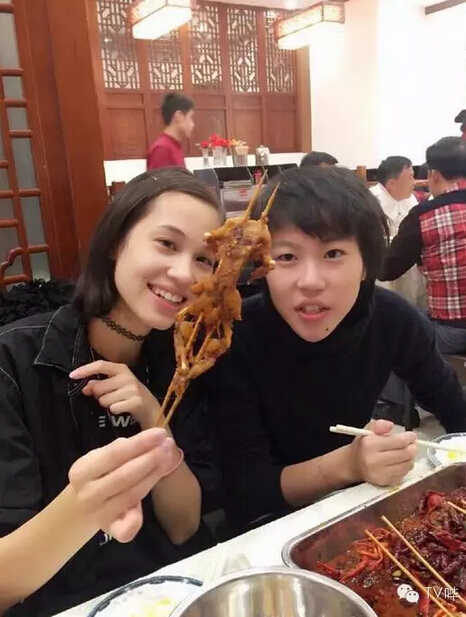 两人一起撸串一起吃火锅。