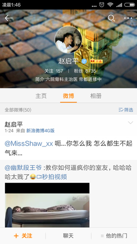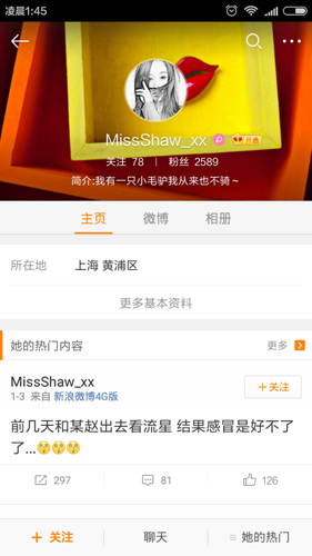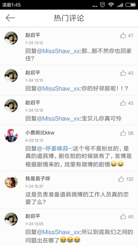 曲筱绡也有微博账号,微博@MissShaw_xx,有和小赵秀恩爱的若干对话。