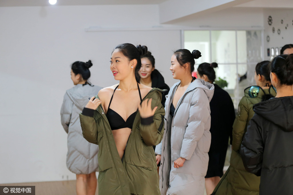 2016年12月2日,在山东省潍坊市区一家艺考集训班上,准备参加艺考的高三生们正在加紧训练。为了备战2017年艺考,来自潍坊市区的高三学子聚集在这个集训班上,进行形体、舞蹈、化妆等科目的训练,迎接2017年高考模特专业及空乘等专业的考试。(图文来源:视觉中国)