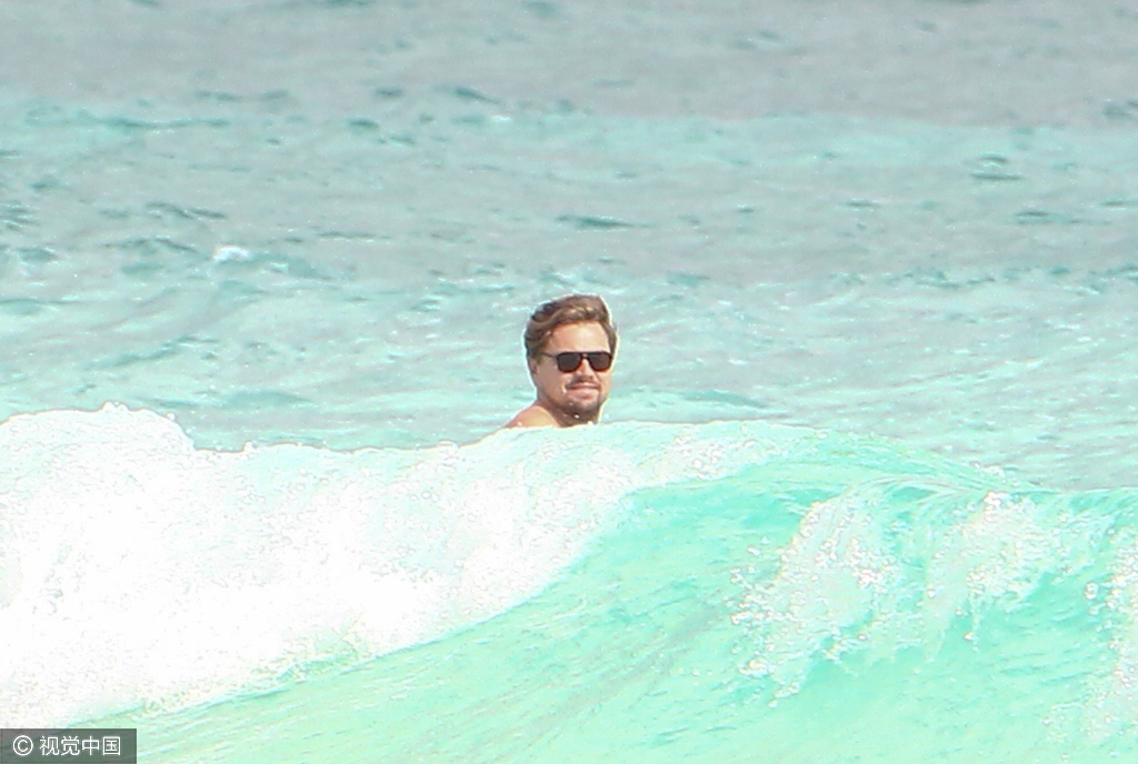 当地时间2016年12月13日,墨西哥,“小李子”莱昂纳多·迪卡普里奥(Leonardo DiCaprio)身着短裤赤裸上半身海边度假,大肚腩暴露无遗。