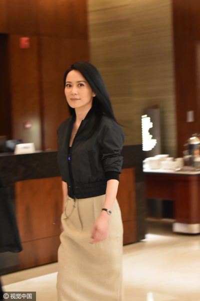 近日,45岁的“惊鸿仙子”俞飞鸿来到上海出席活动。当天,俞飞鸿一身OL装扮现身酒店大堂,步态优雅气质佳。有粉丝见到俞飞鸿后便上前索要签名,虽然一旁工作人员上前阻拦,但好脾气的俞飞鸿还是停步,满足了大家的签名要求后才上楼回房休息。(图文/视觉中国)