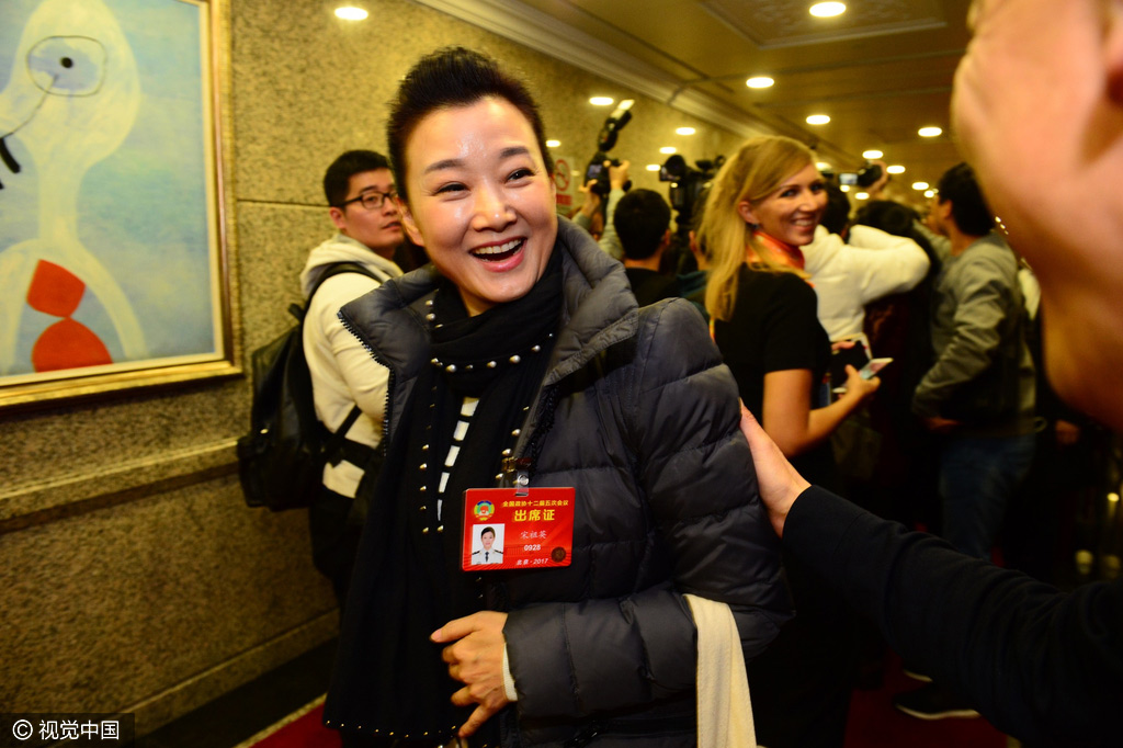 2017年3月5日,北京,第十二届全国人民代表大会第五次会议在北京人民大会堂开幕,全国政协十二届五次会议举行各界别分组讨论会。宋祖英、宋丹丹、成龙、赵本山、陈凯歌、张国立等明星委员们现身。宋祖英到场,面带笑意。(图文来自:视觉中国)