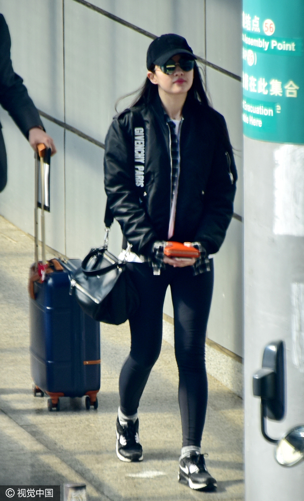 3月7日,刘亦菲巴黎时装周看秀独自回京,获机场专车接驾。早在巴黎时装周刘亦菲就被吐槽神仙姐姐人设彻底崩塌,胖成国字脸犹如大饼。现身机场的刘亦菲飞行夹克配leggings,更显的脸圆腿粗。(图文/视觉中国)