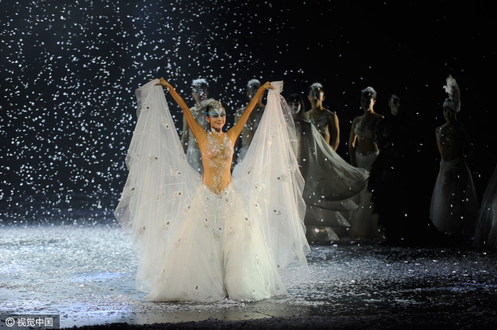 3月30日,59岁杨丽萍携新编舞剧《孔雀之冬》亮相东莞市玉兰大剧院。从《孔雀公主》《雀之灵》到《雀之恋》《孔雀》,杨丽萍以独特的舞蹈语言和不同阶段的生命之美,赋予了舞台上的孔雀不同的绚丽与神韵。2012版舞剧《孔雀》分为春、夏、秋、冬四幕,讲述了一个关于成长、人性和爱的故事。此次上演的《孔雀之冬》把《孔雀》原“春、夏、秋、冬”四幕中单取“冬”的篇章,延伸改编成完整、独立的舞剧作品。(图文/视觉中国)