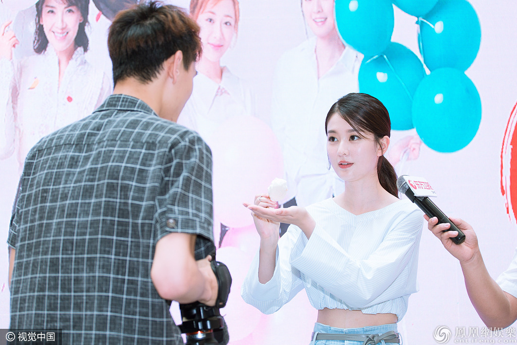 5月6日,广州,“关关”乔欣现身广州海珠区合生广场为《欢乐颂2》造势,身材高挑的她露出纤细蛮腰,皮肤白皙简直嫩出水,现场还与粉丝互动,相当亲和!她品尝广州地道美食喂男摄影师和台下观众十分亲切,亲自喂食。93年的乔欣引来不少粉丝围观和追捧,自称喜欢的对象是要单眼皮、黑、有肌肉、小眼睛。