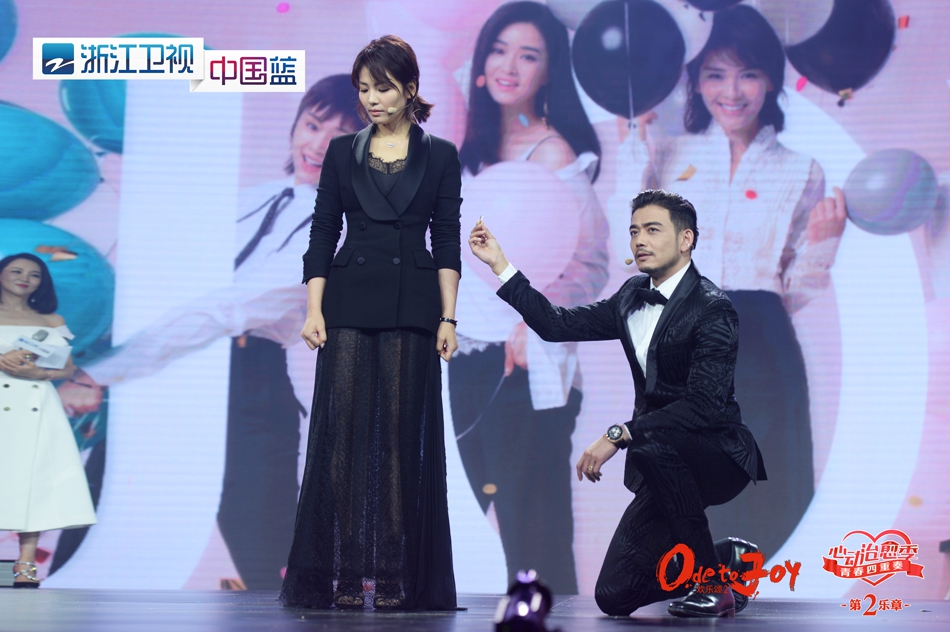 5月5日,由浙江卫视中国蓝主办的“欢乐大会”暨浙江卫视《欢乐颂2》首映礼在杭州盛大举行,“五美”刘涛、蒋欣、王子文、乔欣等现身录制开播特别节目。现场互动频频,“小包总”杨烁现场下跪求婚“安迪”刘涛,王子文、乔欣还上演热吻一段,笑料十足。