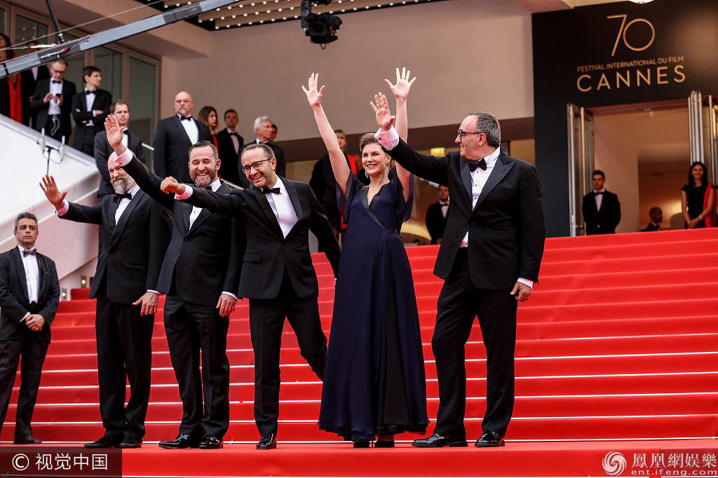当地时间2017年5月18日,法国戛纳,第70届戛纳电影节,主竞赛单元电影《无爱可诉》(Loveless)举行首映礼,群星红毯斗艳,杨紫琼黑白拼接裙现身气度不凡。图为导演安德烈·萨金塞夫(Andrei Zvyagintsev)、演员Maryana Spivak、Mikhail Krichman、Aleksey Rozin现身。(图文/视觉中国)