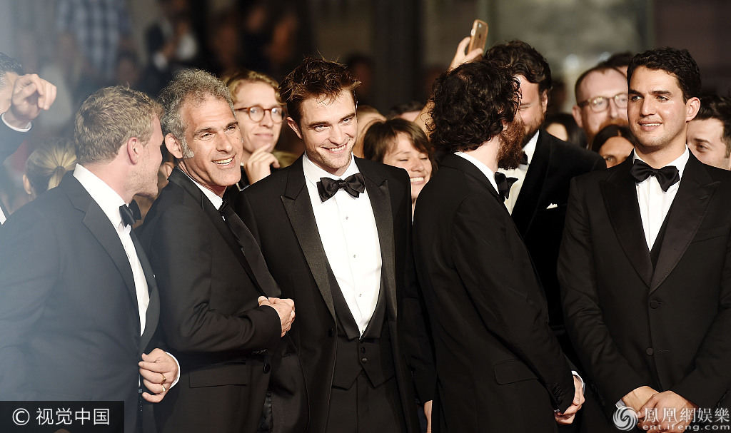 当地时间2017年5月25日,法国戛纳,第70届戛纳电影节,主竞赛单元电影《好时光》(Good Time)首映礼。联合导演本· 萨弗迪( Ben Safdie)、联合导演约书亚·萨弗迪(Joshua Safdie)、演员罗伯特·帕丁森(Robert Pattinson)、制片人Sebastian Bear-McClard现身。“暮光男”罗伯特·帕丁森西装革履,帅气逼人,但炸飞的头毛和逗比的眉毛确抢镜十足。他的未婚妻FKA Twigs个性盘发造型亮相,与帕丁森同场不同框。