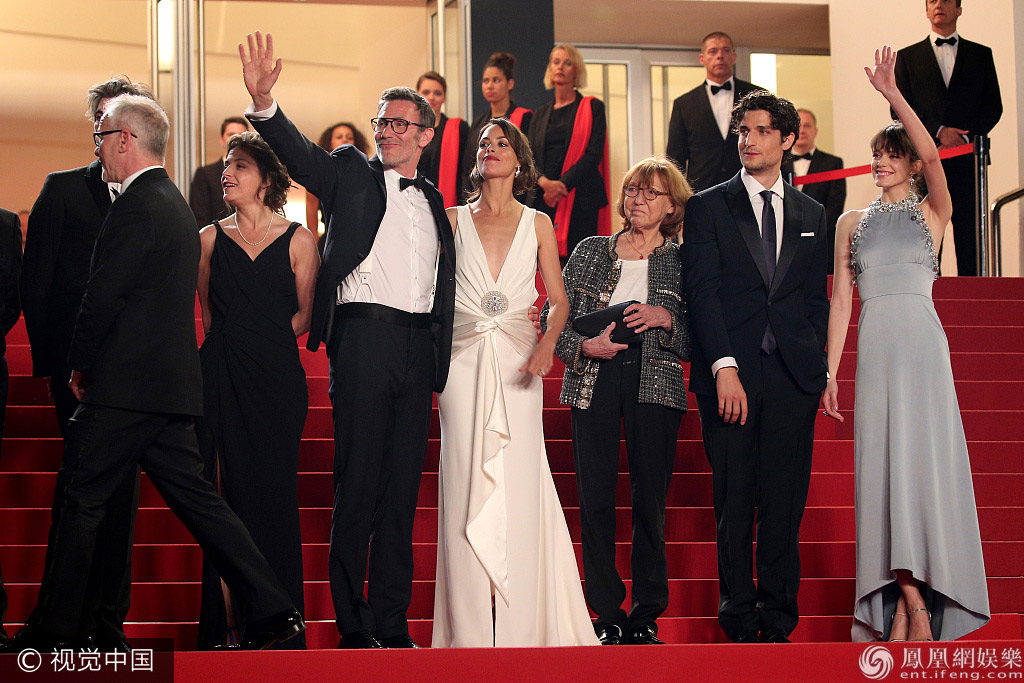 当地时间2017年5月21日,法国戛纳,第70届戛纳电影节,主竞赛单元影片《敬畏》(Redoubtable)举办首映礼,导演米歇尔·阿萨纳维休(Michel Hazanavicius)、斯黛茜·马汀路(Stacy Martin)、易斯·加瑞尔(Louis Garrel)、米切尔·阿萨纳维休(Michael Hazanavicius)、贝热尼丝·贝乔( Berenice Bejo)现身。贝热尼丝·贝乔深V露背美艳,斯黛茜·马汀路挂脖镶钻裙露美背。(图文/视觉中国)