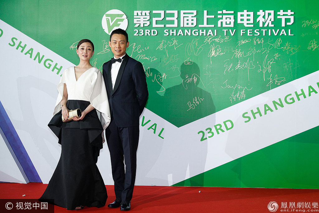 6月16日,第23届上海电视节闭幕红毯举行。董卿、殷桃、张译、刘涛、蒋欣、王子文、杨紫、姚晨、钟汉良等明星出席。图为本届“视后”殷桃与“视帝”张译。(图/视觉中国)