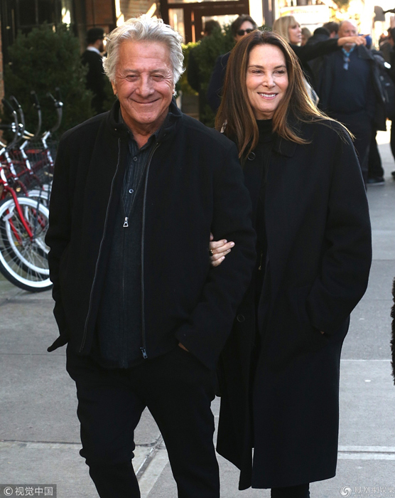 当地时间2017年11月27日,纽约,影帝达斯汀·霍夫曼(Dustin Hoffman)与妻子丽萨·霍夫曼(Lisa Hoffman)外出就餐,两人身穿黑色“情侣款”大衣,边走边聊暗戳戳秀恩爱。近日,达斯汀·霍夫曼被女作家安娜·格雷厄姆·亨特在《好莱坞报道》中披露,1985年,霍夫曼对17岁的她进行性骚扰。据悉,1980年,霍夫曼在《克莱默夫妇》中扮演泰德·克雷默一角为他揽获第52届奥斯卡金像奖最佳男主角奖。1989年,出演剧情片《雨人》中的自闭症患者,并凭借该片获得第61届奥斯卡金像奖最佳男主角奖。