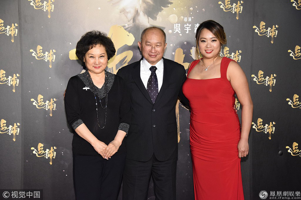 2017年11月22日,电影《追捕》在台举办首映会。吴宇森携手妻女牛春龙、吴飞霞现身,女儿吴飞霞红裙优雅,丰满上围十足抢镜。韩国女星河智苑和日本女星樱庭奈奈美也盛装出席,河智苑胸前系蝴蝶结尽展淑女范。