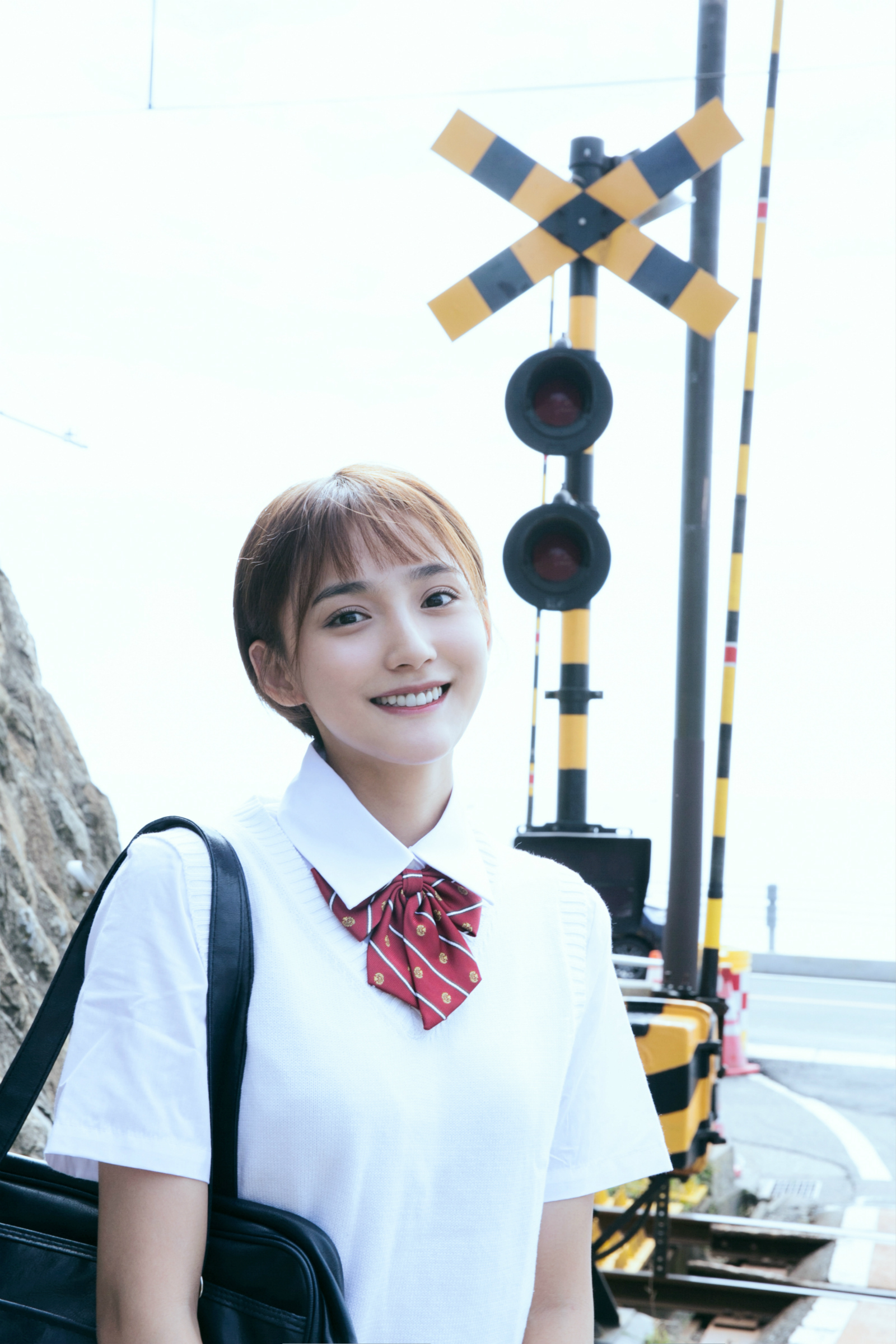 近日,女星艾晓琪曝光了一组写真大片。在镜头中,她上身穿着白色T恤,下身搭配米色条纹短裙,一头干净利落的短发和青春洋溢的笑容,让人眼前一亮。