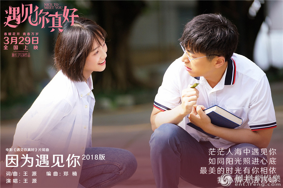 由顾长卫执导的青春怀旧喜剧《遇见你真好》将于3月29日全国公映,今日该片发布片尾曲MV——由王源作曲、全新填词并献唱的《因为遇见你2018版》。王源表示,看完电影《遇见你真好》之后非常感动,随即将自己首次词曲创作的《因为遇见你》重新填词,成为全新的《因为遇见你2018版》,作为该片的片尾曲发布。歌曲中“傻傻的我不懂得珍惜,竟然弄丢了你”等新歌词与电影的情节相互呼应,而熟悉的曲风也与该片中“动人的遇见”结合的天衣无缝。