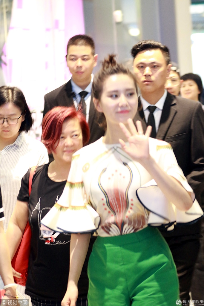刘诗诗梳丸子头超显嫩 微笑着向粉丝们招手致意
