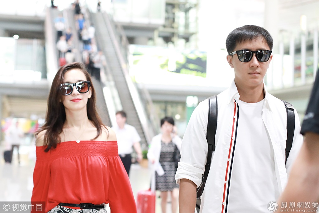 韩庚与女友机场合体撒狗粮 卢靖衫秀香肩美腿吸睛