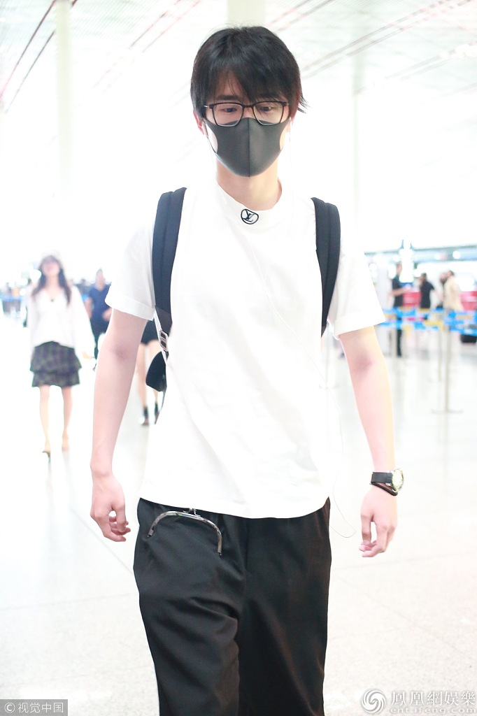8月15日,刘昊然现身北京机场,他穿白衫黑裤显随性,戴有框眼镜变文艺少年,遭迷妹围拍人气旺。