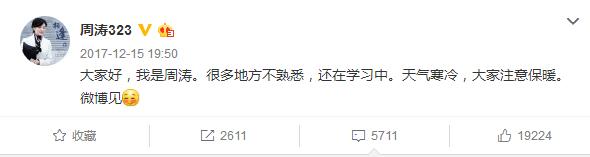周涛开微博很晚,去年底才开始玩儿微博,口气确实是一副很正的老阿姨口气。