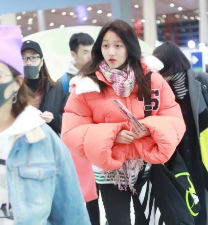 关晓彤素颜粉红羽绒服现身机场,干净清爽有朝气
